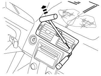 - Remove the ventilation outlet by carefully inserting special tool 9995919 between the ribs and carefully pulling up the four catches on the lower edge. Carefully pry using a weatherstrip tool.