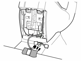 - Tape the connector and a piece of the cable harness to the wire spiral and carefully pull it through. Help to feed it out through the hole for the gear shift gaiter and the hole where the storage compartment was located. If necessary lift up the rear edge of the tunnel console to facilitate routing.