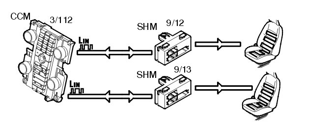 Communication between the climate control module (CCM) and each seat heating module (SHM) takes place in the following way: