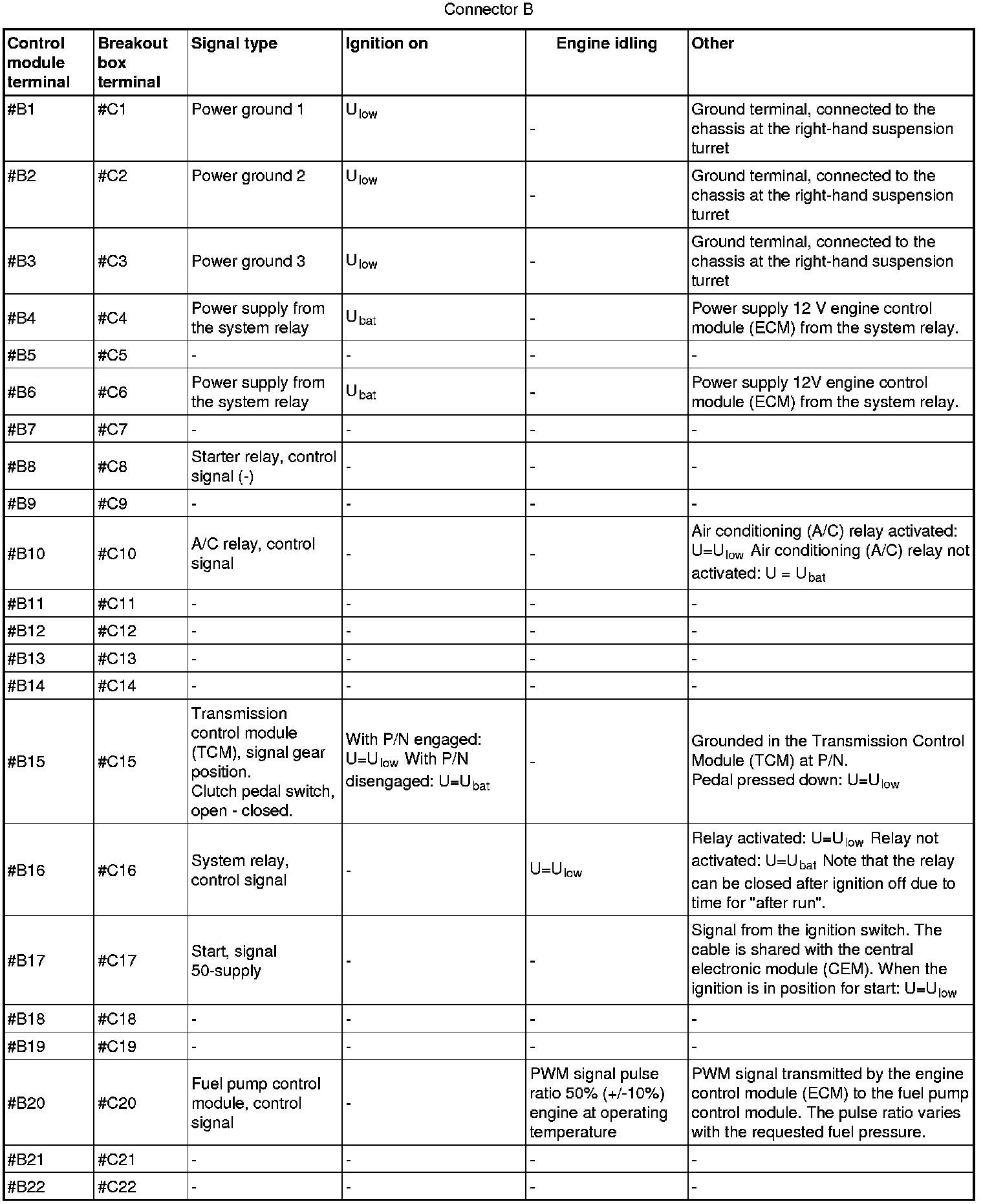 All values given below are between the terminals stated in column 1 and breakout box terminal in the terminal) and terminal #B1 (#C1) unless otherwise indicated in column 6 (Miscellaneous).