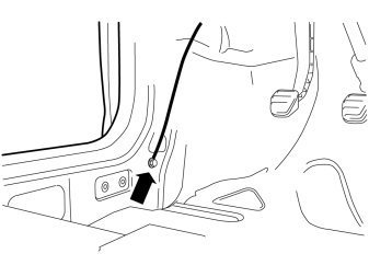 - Place the ground connection for the cable harness at the front ground terminal in the A post.