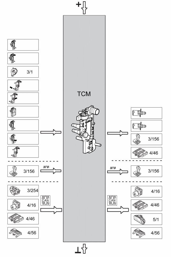 This Design and Function only describes Transmission control module (TCM), its function and associated sensors. For information on transmission's mechanical parts and function, see Design and Function, Transmission.