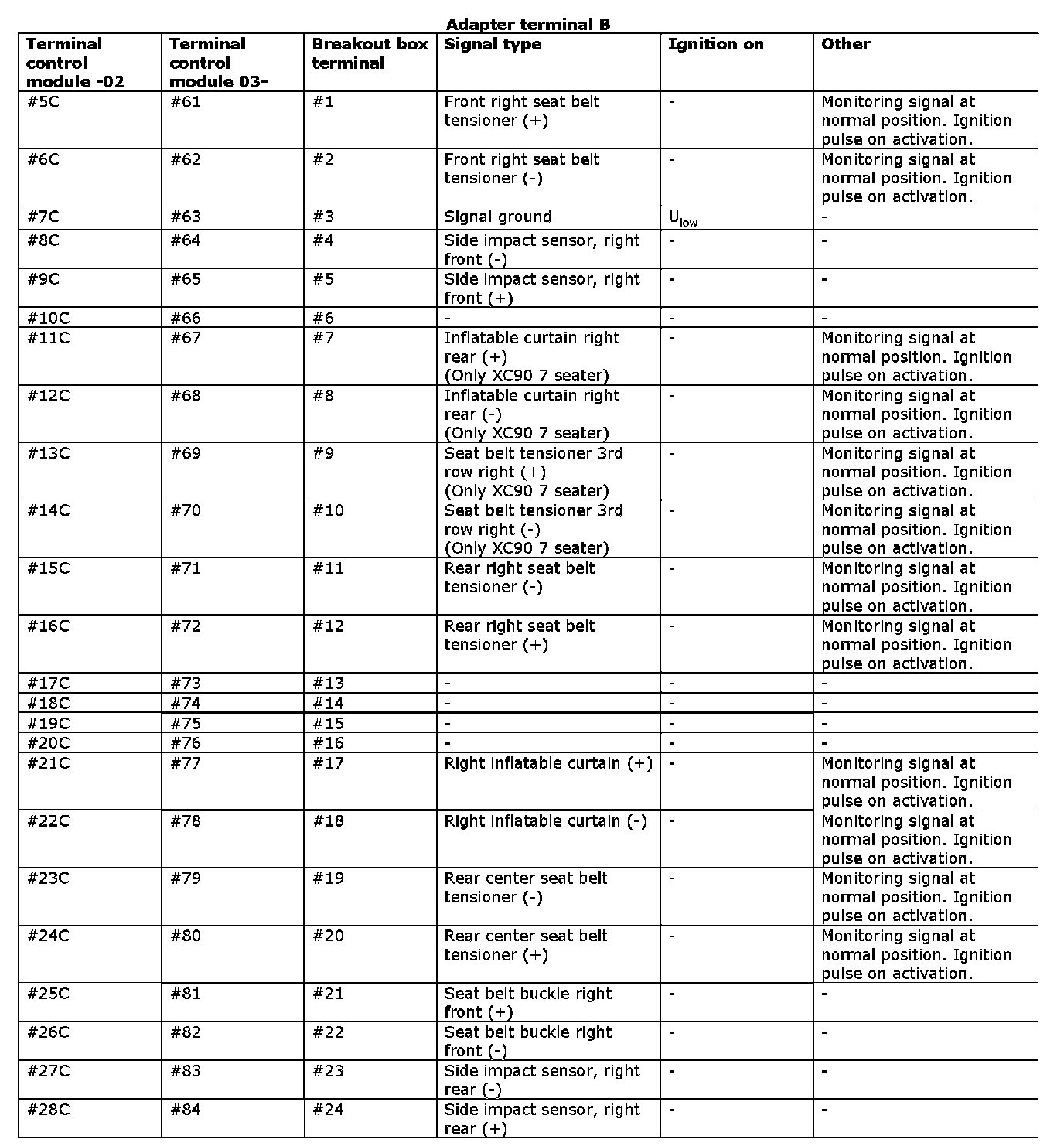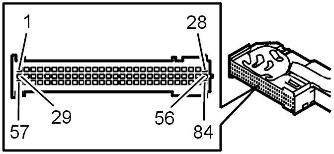 NOTE: It is important to connect the breakout box and check the ground terminals before taking readings. The adapter has two terminals for the breakout box. The signals in the 84-pin connector are split between adapter terminals A and B. For some VIDA fault-tracing, the connectors are numbered #1A-#28A, #1B-#28B and #1C- #28C. This is because fault-tracing is used from previous model years. From and including model year 2003, the connectors are numbered #1-#84.