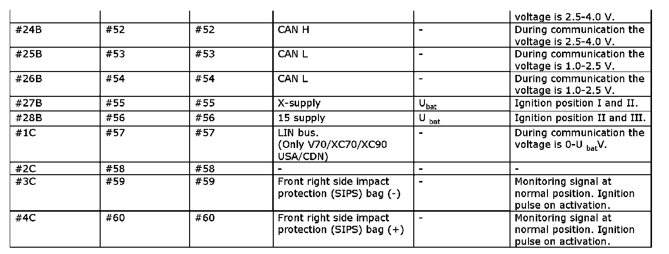 Signal Specification, Supplemental Restraint System Module (SRS)