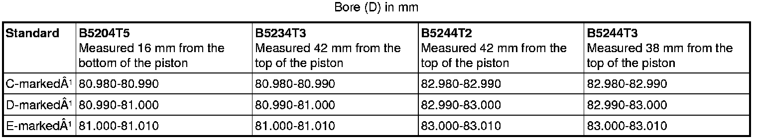 The bore classification is stamped on top of the engine block. For example: 1CCDDE is read as cyl 1=C, cyl 2=C, cyl 3=D, cyl 4=D, cyl 5=E.