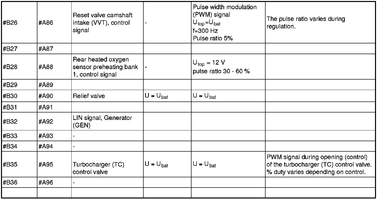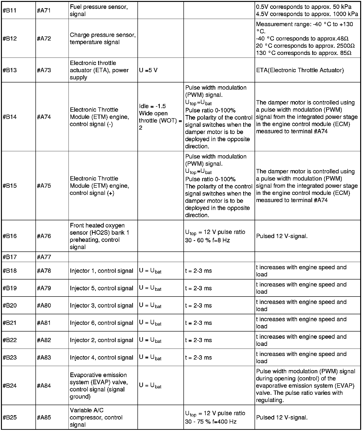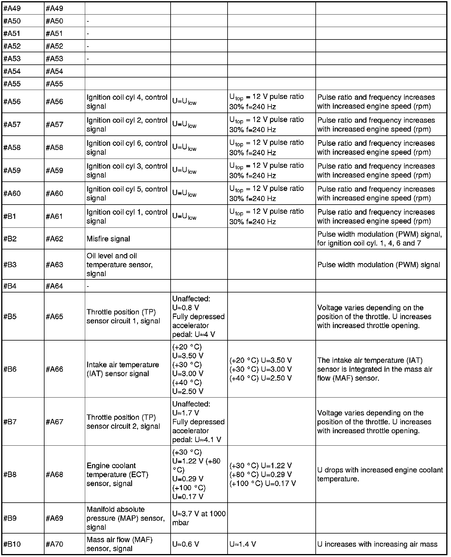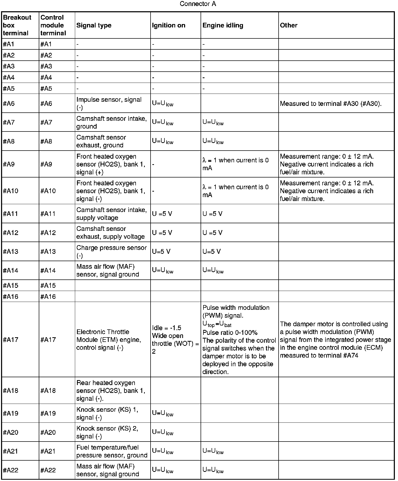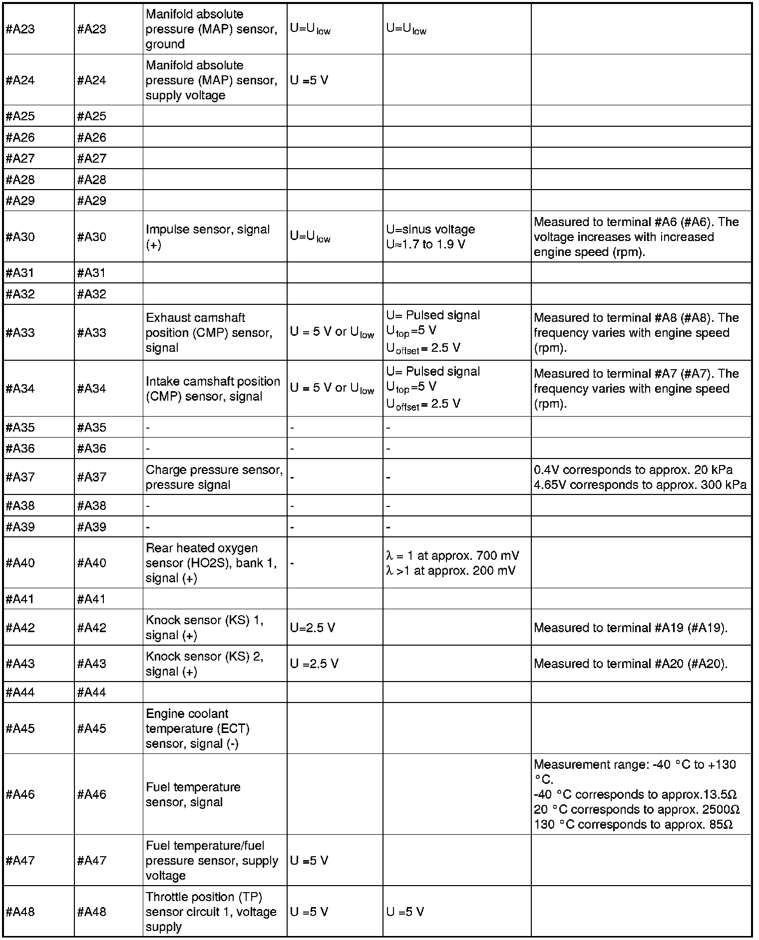 All values below are measured between the relevant terminal in column 2 and #Axx (#Axx on the breakout box) unless otherwise stated in parenthesis after the table entry.