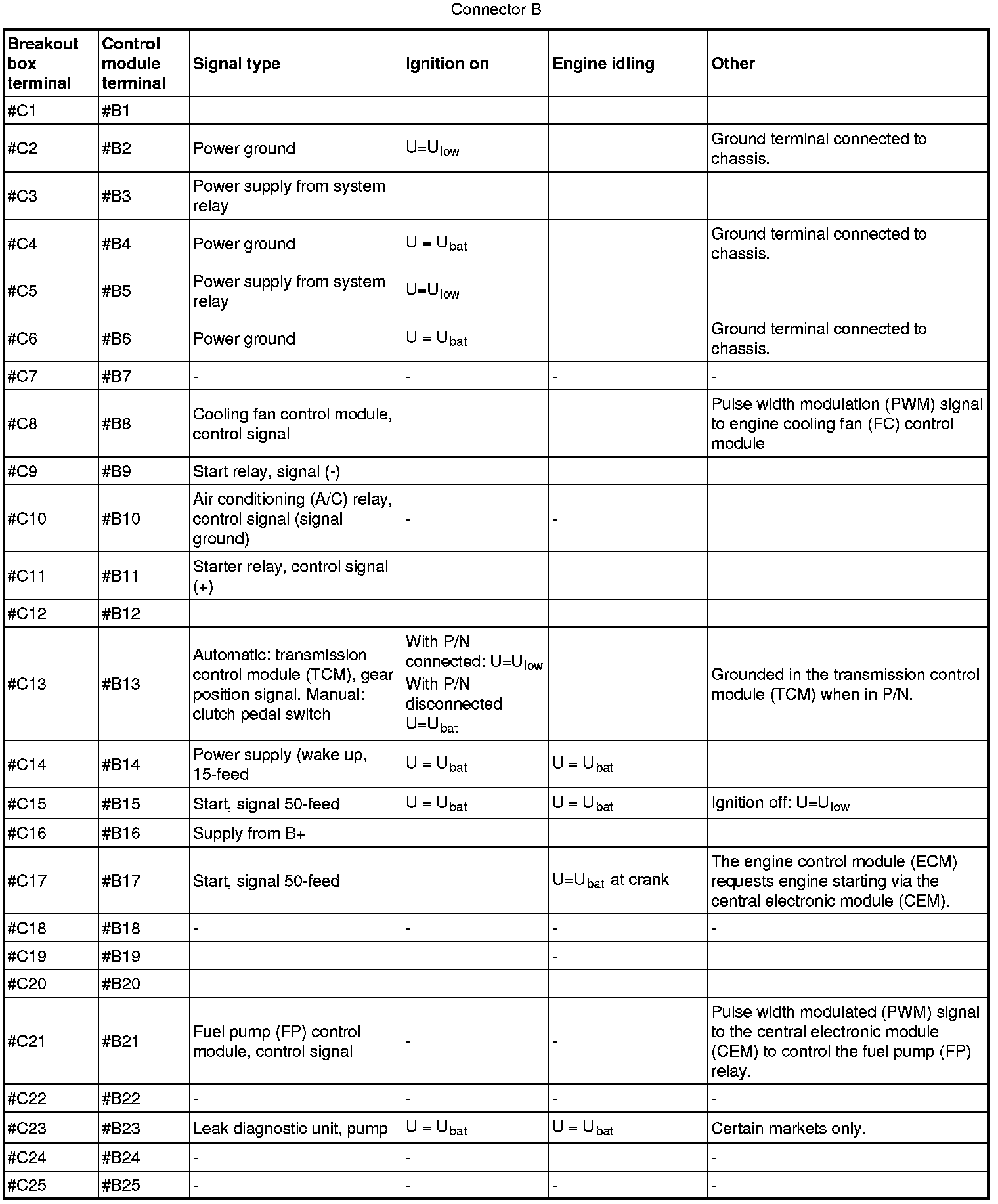 Connector B (58-pin engine side) corresponds to terminals #C1 - #58 on the breakout box.