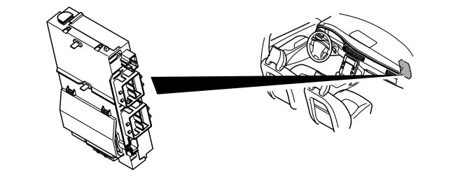 The switch for valet locking is at one edge of the glove compartment in the dashboard. The switch is directly connected to the central electronic module (CEM). The switch is affected after the glove compartment has been locked in the normal way using the key blade (turning 0 to 90 degrees) and then continuing to turn (from 90 to 180 degrees). When activating or deactivating the function, a message is displayed in the driver information module (DIM).