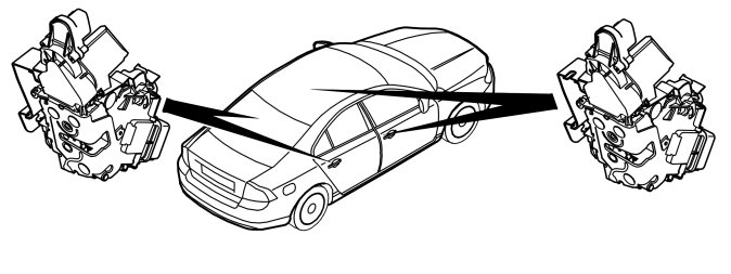 The rear door control modules are directly connected to the lock motor in each door. The door control modules lock and unlock the door on receipt of a command from the front door control module.