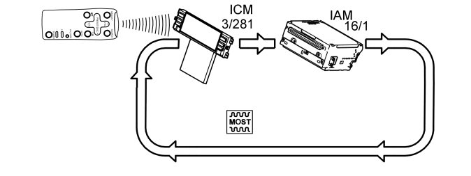 The integrated audio module (IAM) functions as a stereo system in the vehicle and is connected to other control modules on the MOST network.
