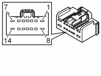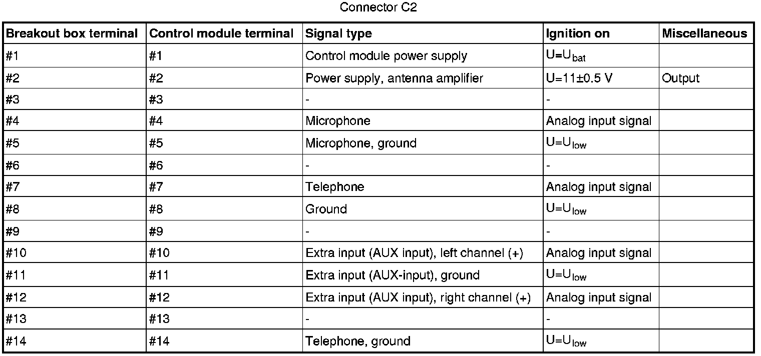 All values below are measured between the relevant terminal in column 1 and C2-8 in column 2 (power ground) unless otherwise stated in parenthesis after the table entry.