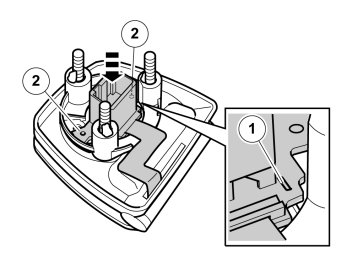- the guide hole (1) in the connector's circuit board aligns in the corresponding pin at the bottom of the holder