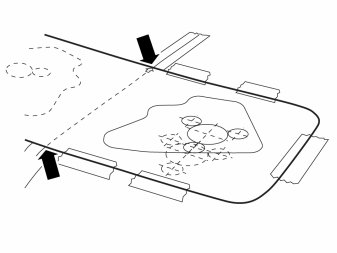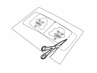 - Take the template and position the arrow point by the marking for 82 mm (3¼"). Position the template so that the central line follows the line on the piece of tape.