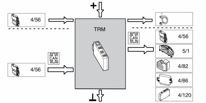 The trailer module (TRM) communicates with directly connected components and with other control modules via the controller area network (CAN).
