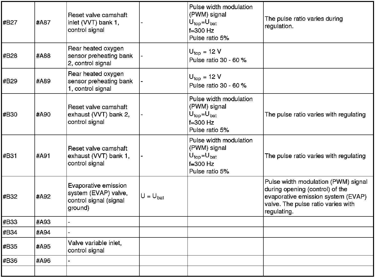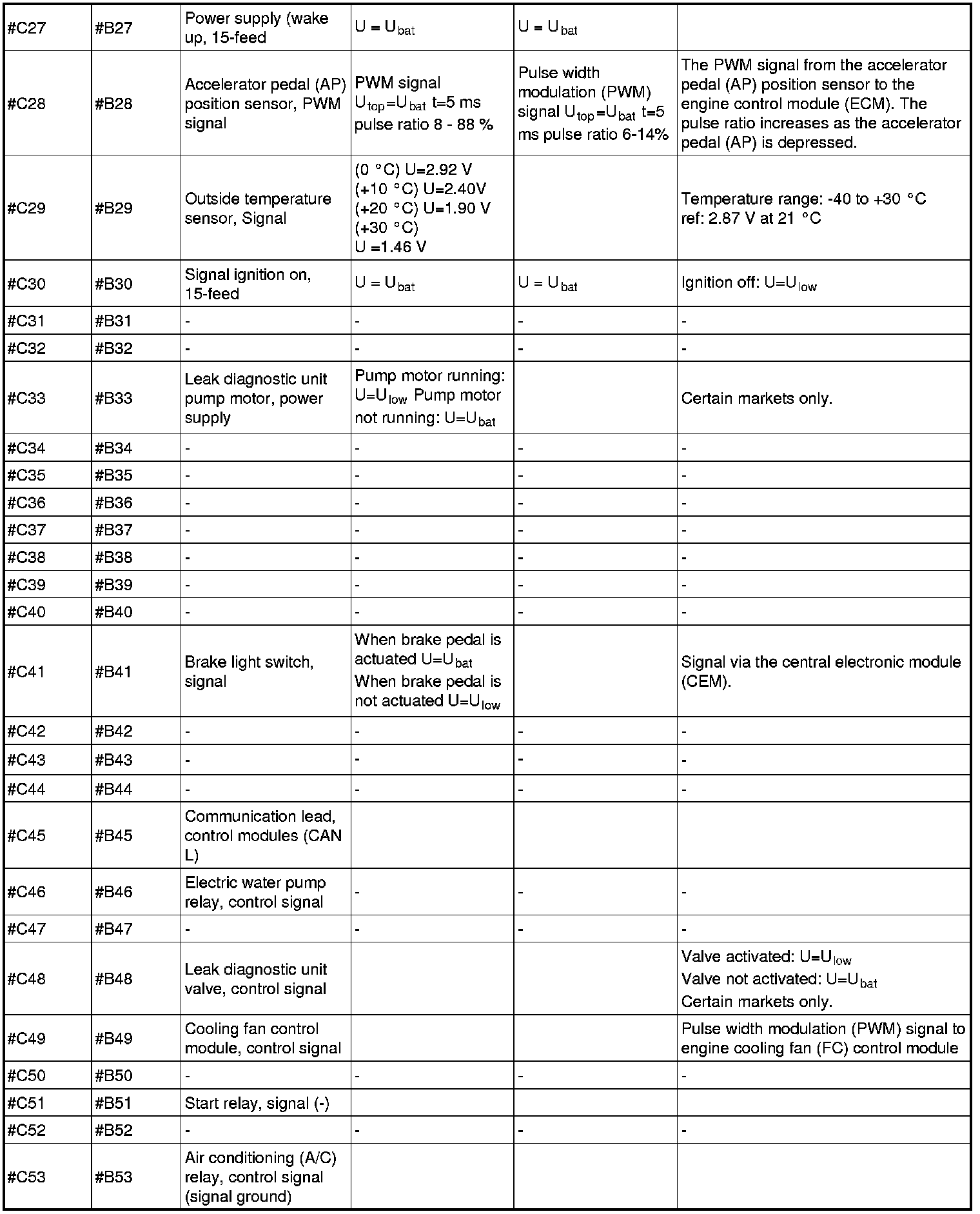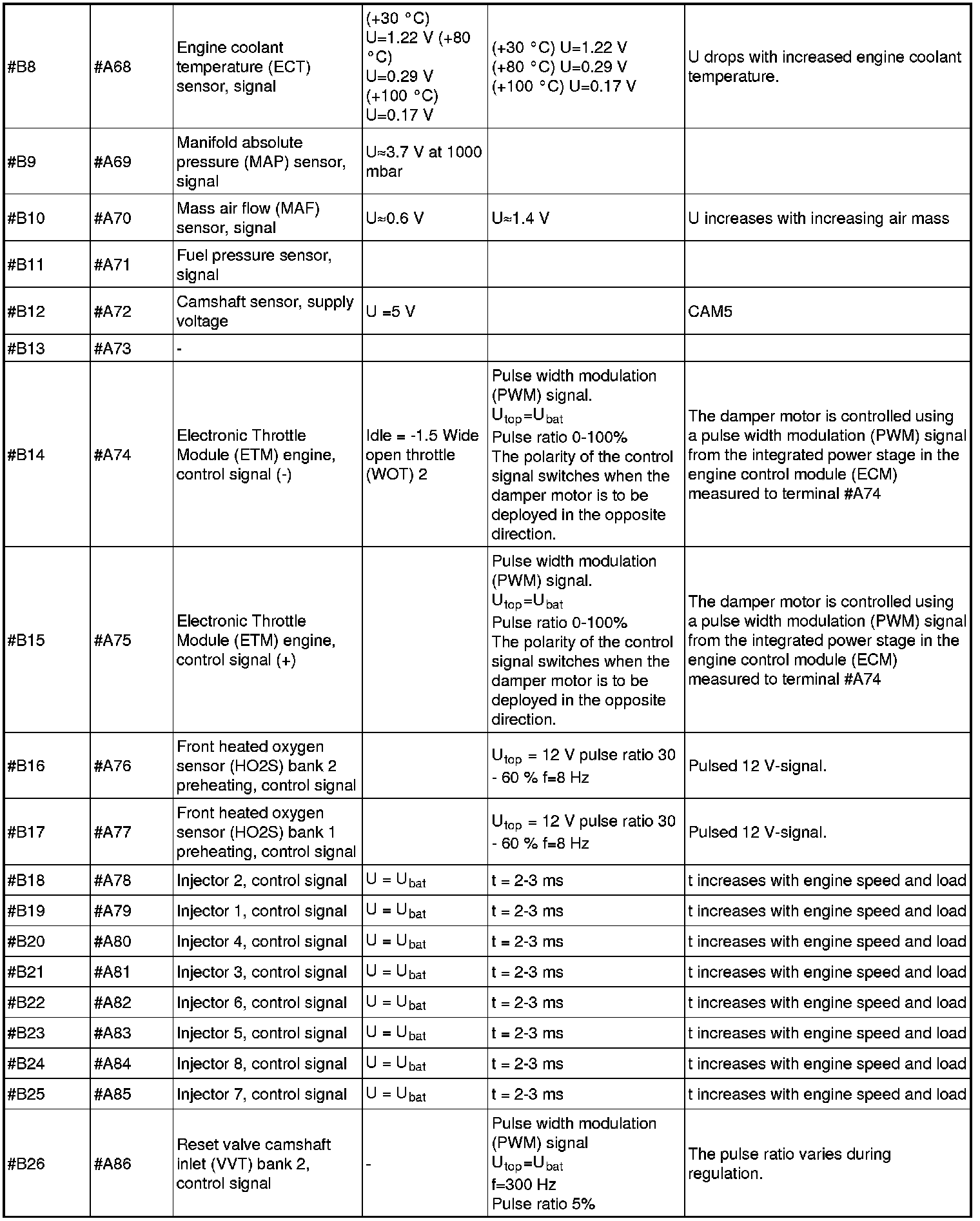 All values below are measured between the relevant terminal in column 2 and #Axx (#Axx on the breakout box) unless otherwise stated in parenthesis after the table entry.