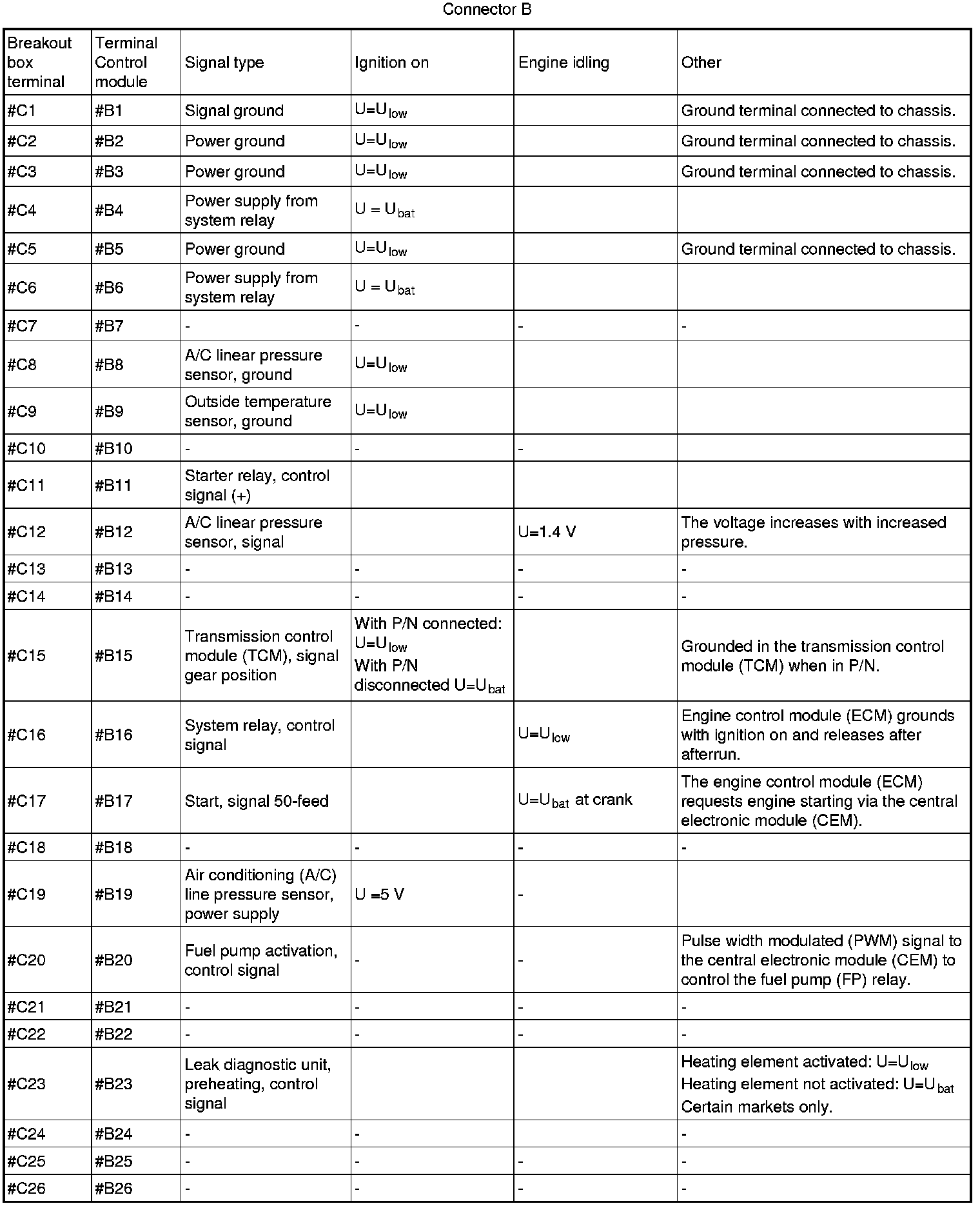 Connector B (58-pin engine side) corresponds to terminals #C1 - #58 on the breakout box.