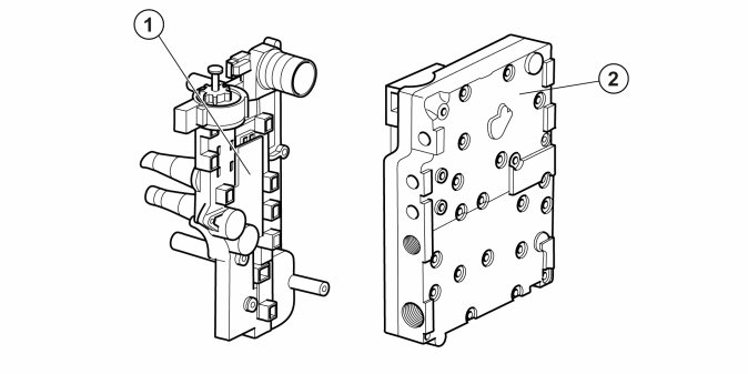 Note! Transmission control module (TCM) and the hydraulic valve housing in the Mecatronic unit are adapted to each other in the factory, by a check of the oil flow through each solenoid at a certain trigger current. This means that the control module and valve housing have to be replaced together. That means that it is not possible to replace only Transmission control module (TCM), solenoids, or the valve housing and re-use the other parts.