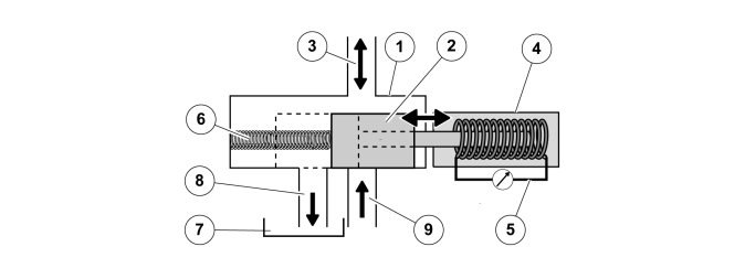 - Supply flow, where the solenoid controls the piston so that correct pressure is generated in the system.