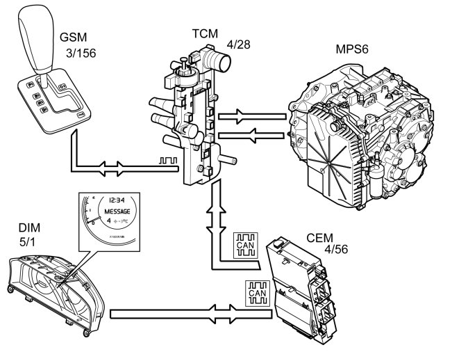 The Gear Selector Module (GSM) can be diagnosed. In the event of a fault a signal on fault status is sent to the transmission control module (TCM) which then stores any diagnostic trouble codes (DTC).