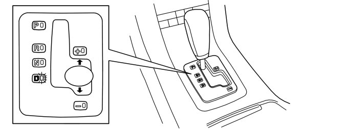 - +/- : Manual shift function. The indicators for both + and - are illuminated when manual mode is active.