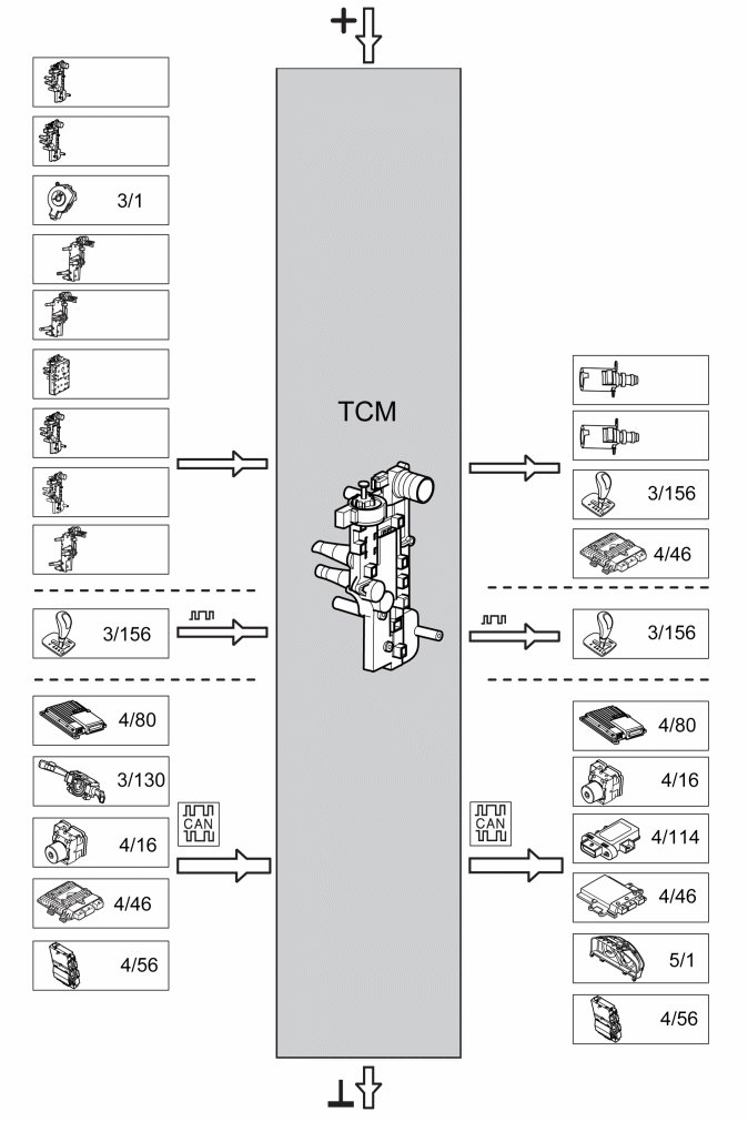 This Design and Function only describes Transmission control module (TCM), its function and associated sensors. For information on transmission's mechanical parts and function, see Design and Function, Transmission.