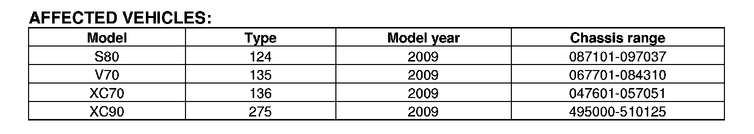 To avoid confusion and incorrectly replaced components, it must be noted that the HALDEX AWD system in the MY 2009 S80, V70, XC70, and XC90 is different compared to MY 2008 and components are not interchangeable. Also note, the temperature/pressure sensor on the MY 2008 S80, V70, XC70, and XC90 DOES NOT EXIST AND IS NOT USED on MY 2009 S80, V70, XC70, and XC90 even though the female connector is still in the DEM.