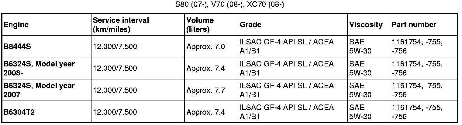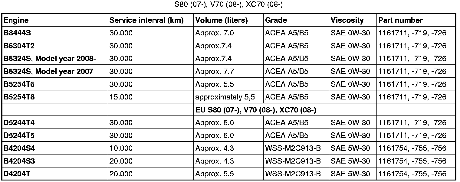 Oil grade ACEA A3/B3/B4 can not be replaced by any other oil other than the one prescribed in the table for engines D5244T, D5244T2 and D5244T3.