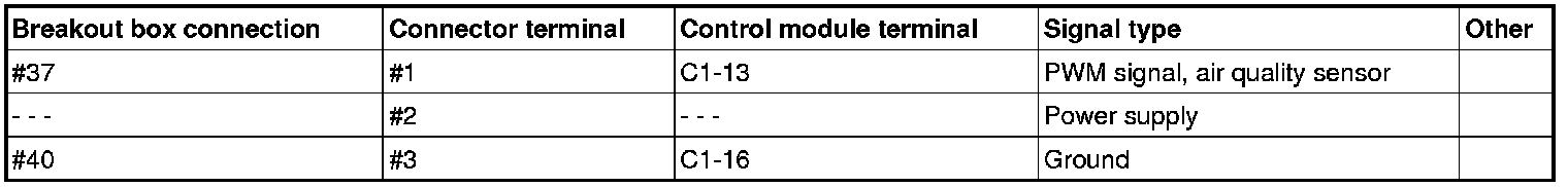 Passenger compartment temperature sensor: Resistance between terminals #30 and #38 on the breakout box should be approx. 11.99 k ohms at +20 °C. Resistance decreases as temperature increases.