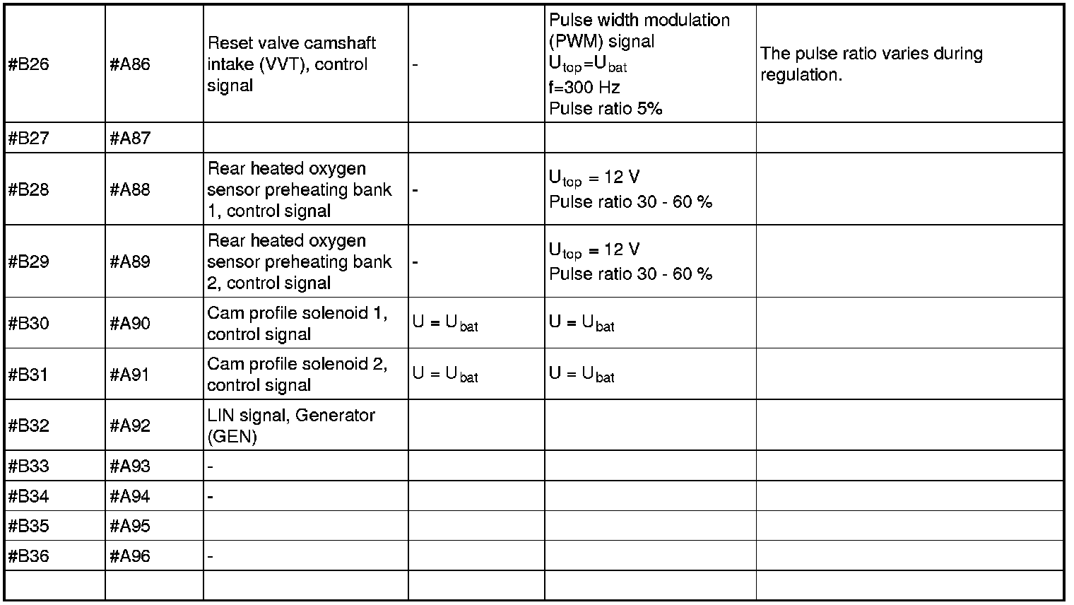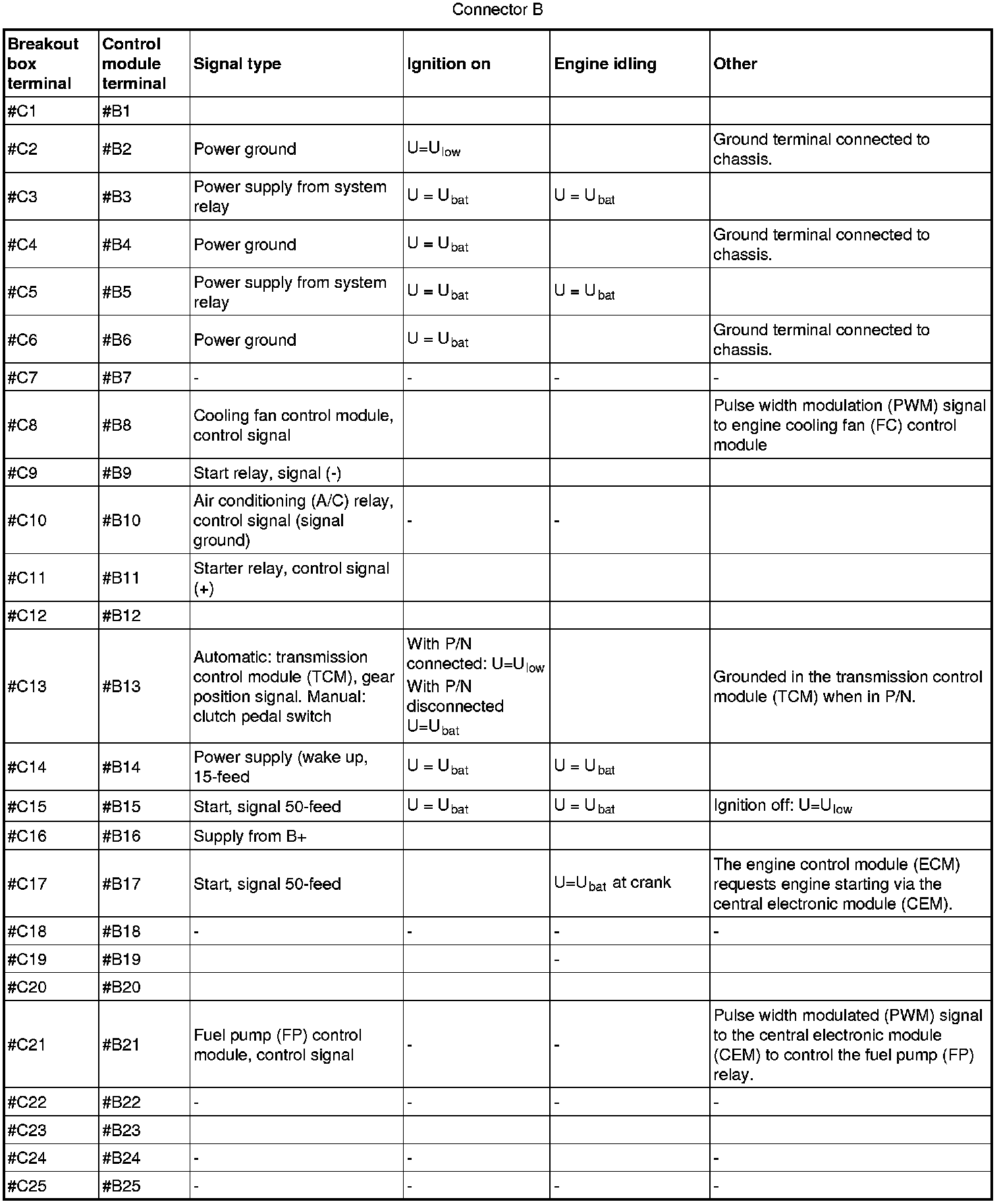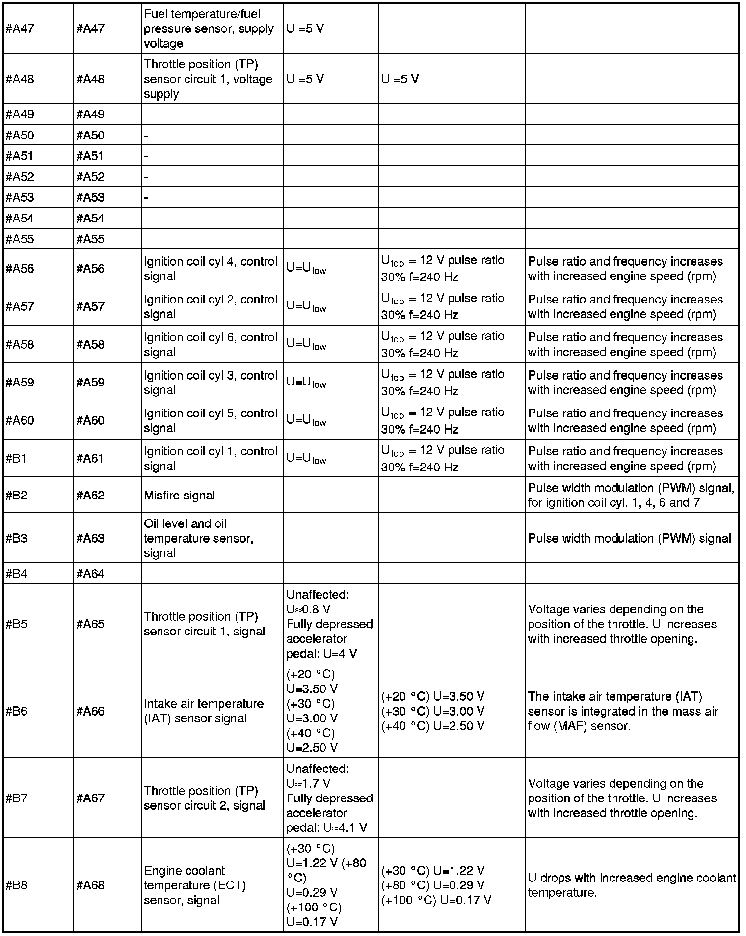 Signal Specification, Engine Control Module (ECM)
