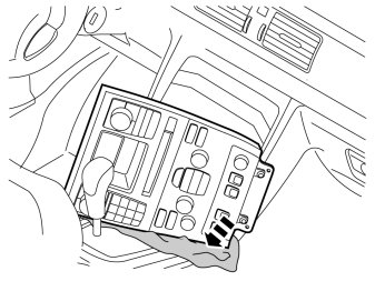 - Lay out a cloth to protect the tunnel console and unit, as illustrated. Depending on the design the cable may need to be disconnected and the unit placed to one side.