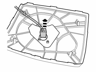 - Pull upward until the loudspeaker grille detaches. The loudspeaker grille is securely fastened by four clips. Move the tool closer to the clips to facilitate removal.