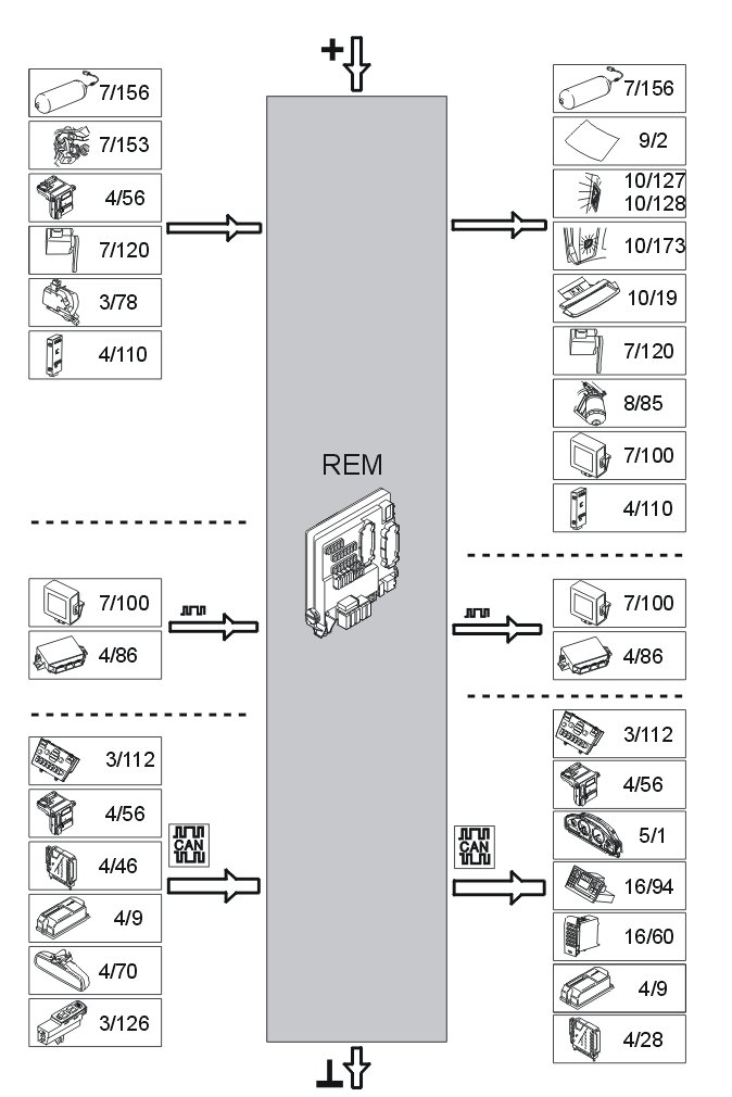 The rear electronic module (REM) communicates with components which are directly connected and also with other control modules and components via serial communication and the control area network (CAN).