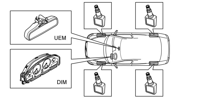The function is integrated in the Upper electronic module (UEM). Sensors are installed together with the air valve on each wheel to measure the air pressure in the tires.