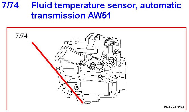 7/74 Fluid Temperature Sensor, Automatic Transmission AW51