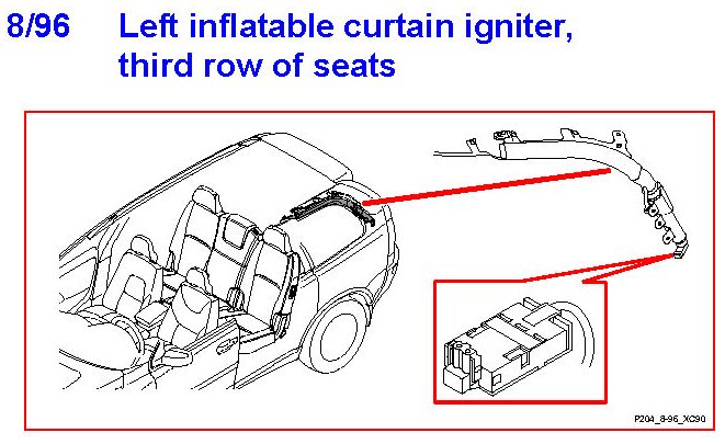 8/96 Left Inflatable Curtain Igniter, Third Row Of Seats