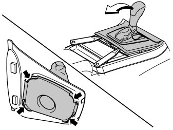 Detach the panel at the gear selector lever as illustrated and move it to one side.