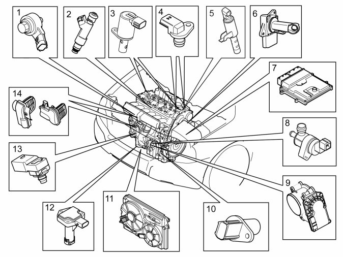 13. Intake pressure sensor.