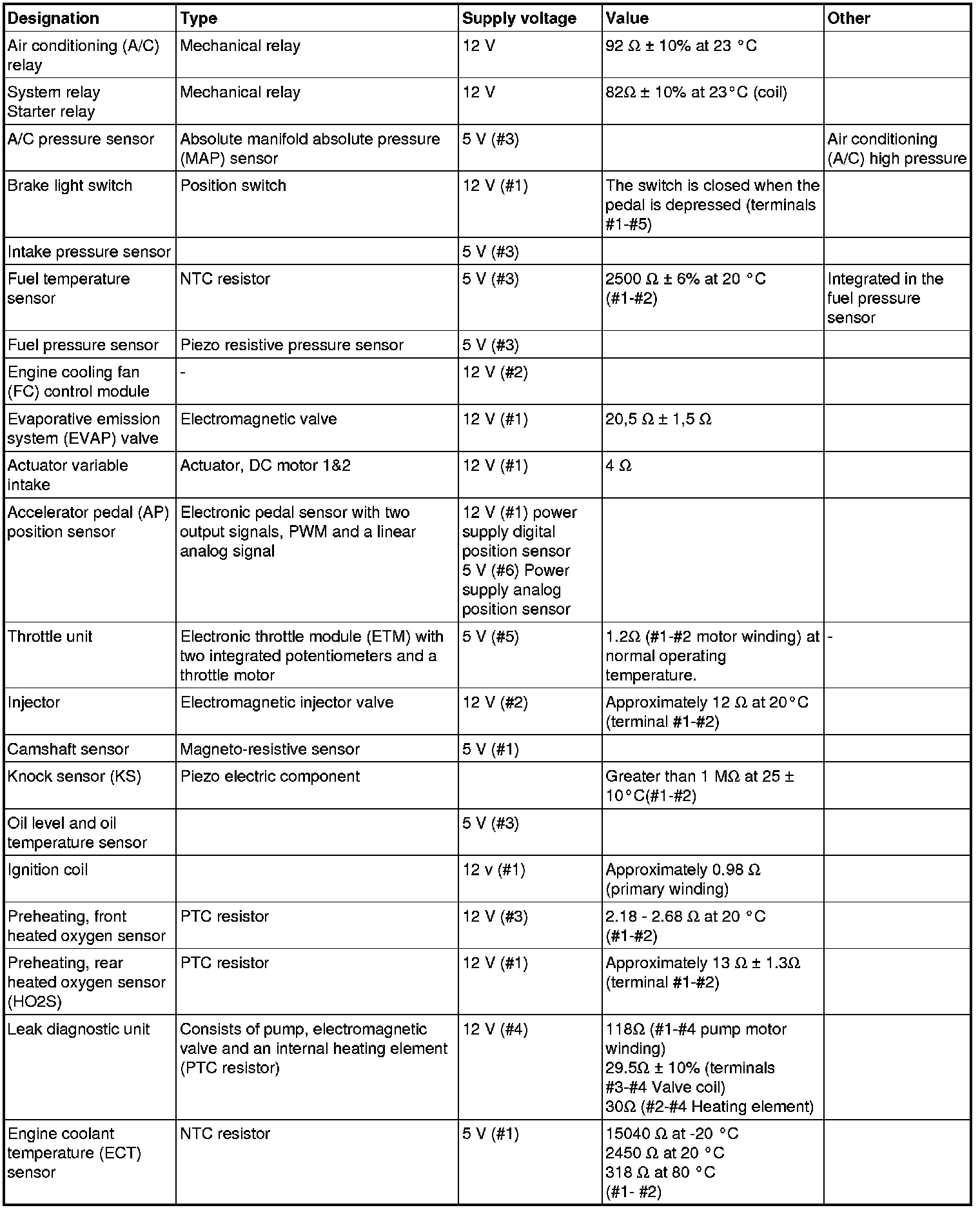 The component specification gives the value of the component when the connector is disconnected. Where no value is given, it is not possible to measure a relevant value at the component.