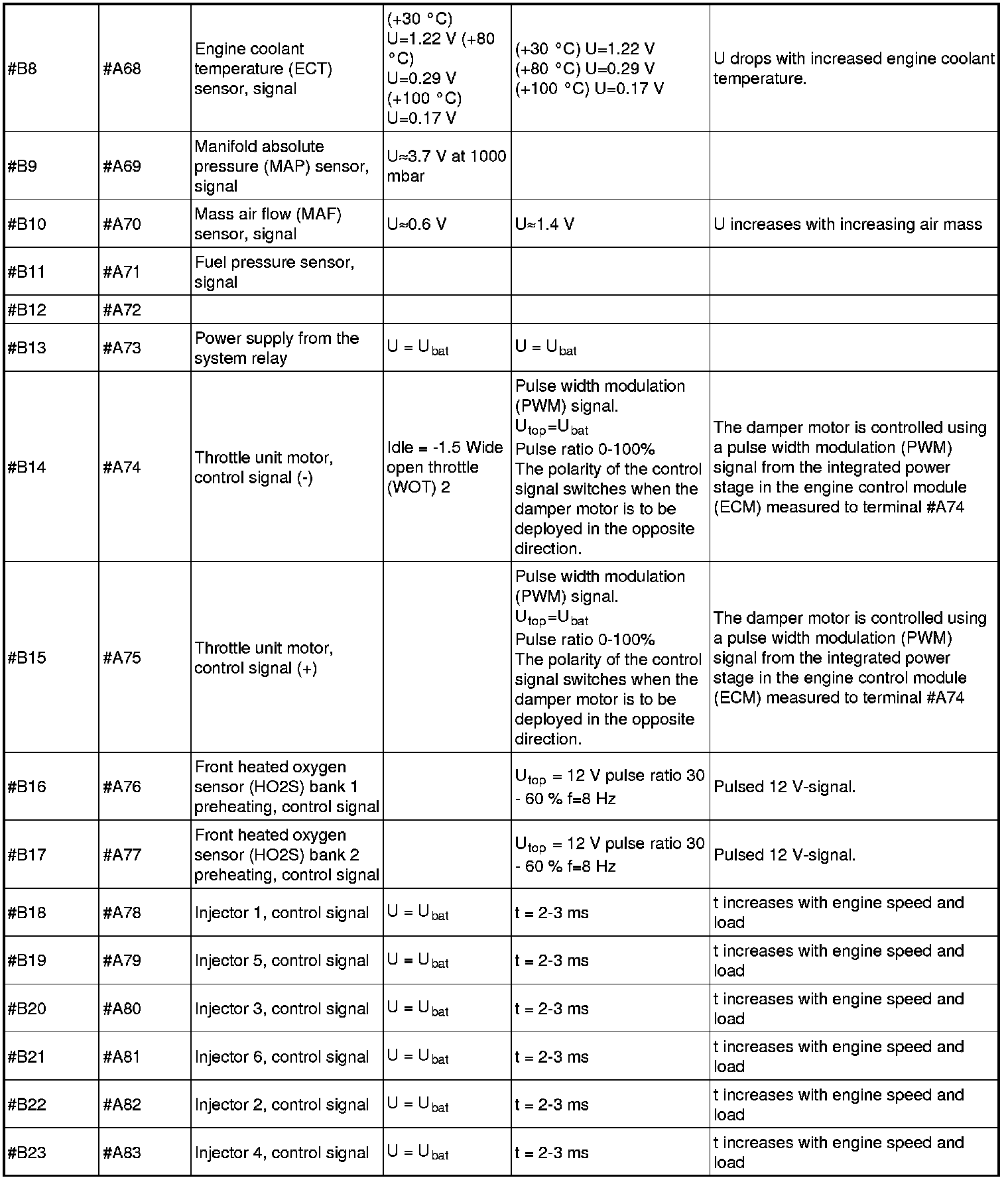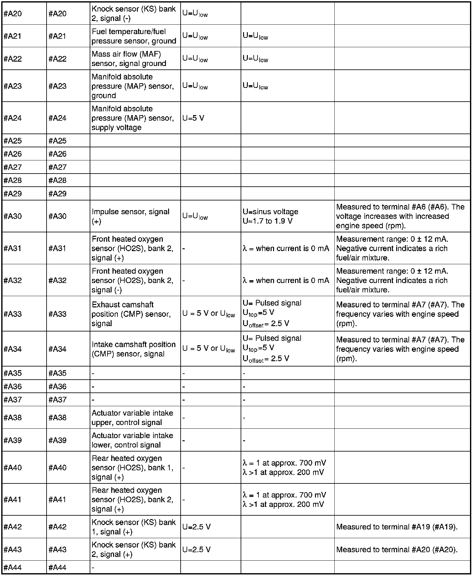 All values indicated below are between respective connection in column 1 and #A C2 on the breakout box. If this is not the case, it is indicated within brackets.