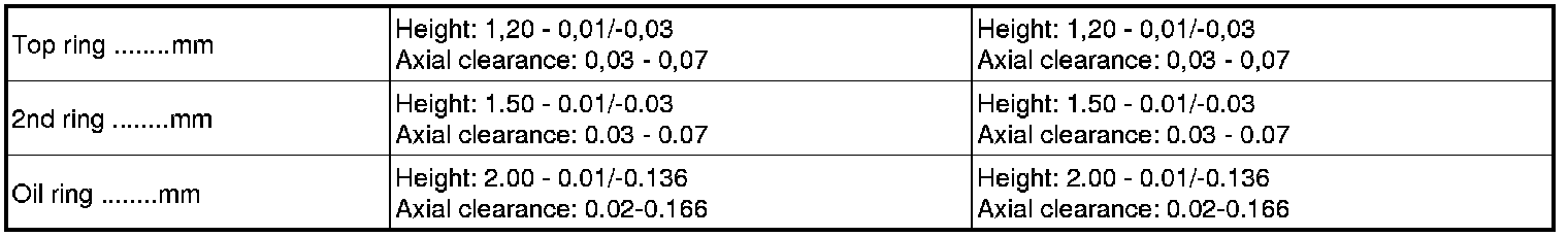 Tolerance piston/cylinder - top 0.026 - 0.050 mm