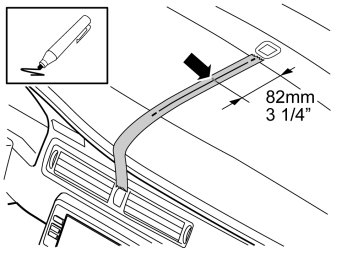 - Measure a distance of 82 mm (3¼") from the joint between the dashboard and grille and rearwards on the dashboard.