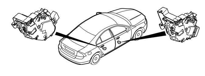 The rear door control modules are directly connected to the lock motor in each door. The door control modules lock and unlock the door on receipt of a command from the front door control module.