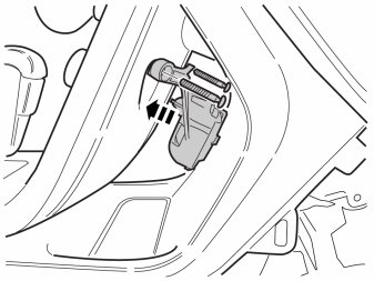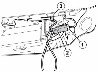 - Connect the cable from the cradle to the cable routed to the rear edge of the glove box. Ensure that the cable goes under the member.