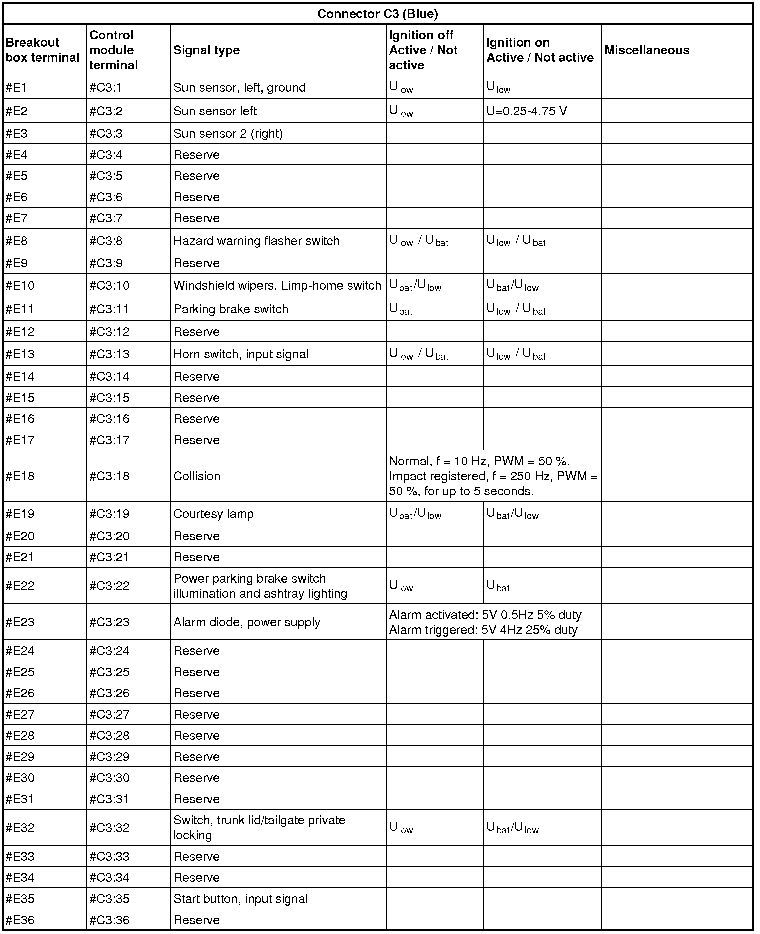 Note! Signal description for CEM generation 2 (structure week >= 09w46) see: Signal specification Signal Description Central Electronic Module (CEM)