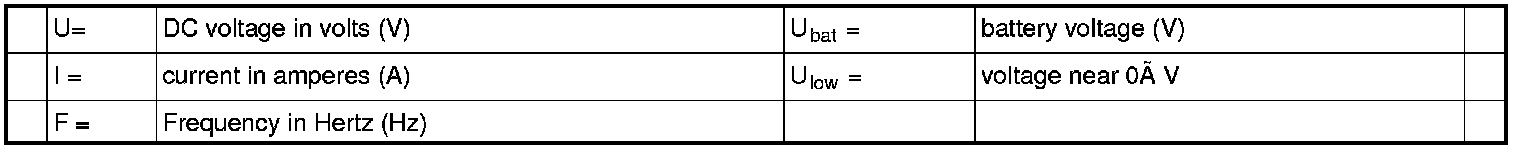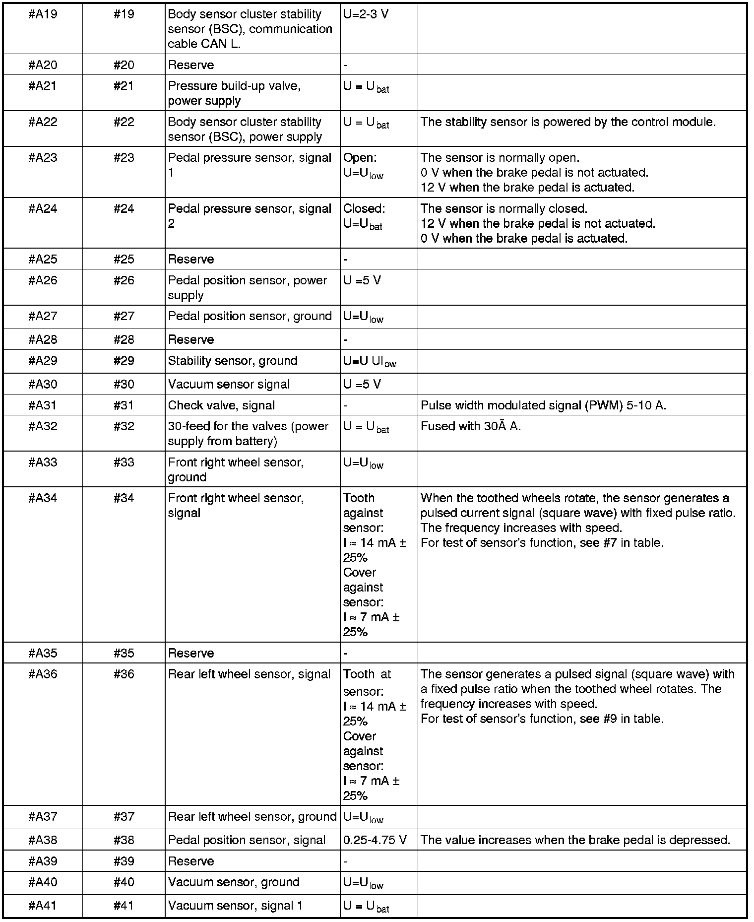 All the values given below are between the relevant terminal stated in column 1 and terminal #A16 or #A47 (ground) unless otherwise stated in parenthesis after the table entry.
