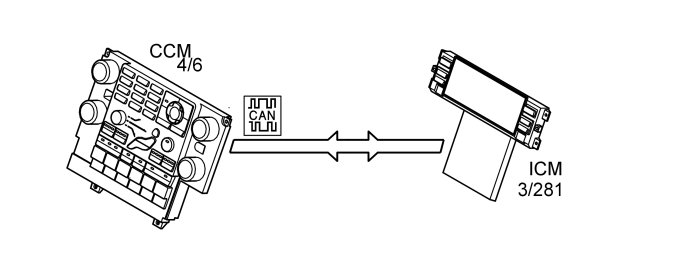 When adjusting the climate settings manually, such as setting the temperature, this is displayed on the infotainment control module (ICM). The climate control module (CCM) transmits a signal to the infotainment control module (ICM) (3/281) via the controller area network (CAN).