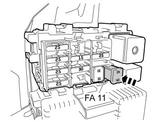 - Take a 40 A fuse from the kit and install it in position FA 11 in module RJB-A.