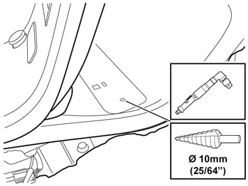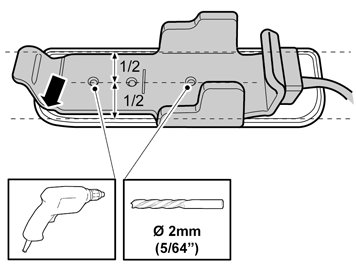 - Disconnect the clips with cable (certain models) and reroute the cable so that it is not in the way of drilling. Check that nothing else obstructs the drilling.