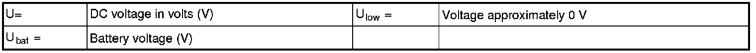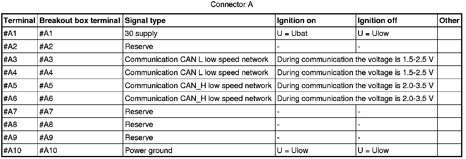 All values given below are between the terminals stated in column 1 and terminal #A10 in column 2 (signal ground). This applies unless