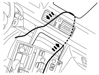 - Take hold of the long cable harness. Route the end with the small connector on the right-hand side in the center console, up and out through the hole for the loudspeaker grille/console loudspeaker grille.